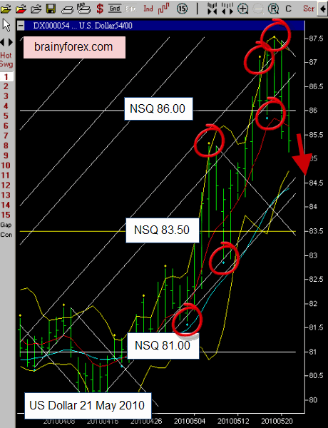 US Dollar daily chart 21 May 2010.